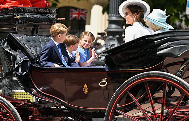 It was a first for the three, and they rode alongside their mother, Kate, who donned a beautiful white coat dress from Alexander McQueen and a Philip Treacy hat, and the Duchess of Cornwall, who looked elegant in a baby blue ensemble.